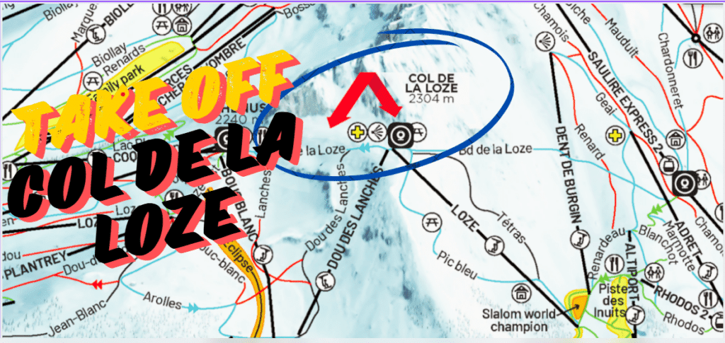 Lieu unique : zone de décollage entre le télésiège Loze Express et le restaurant 1928. Nulle part ailleurs.